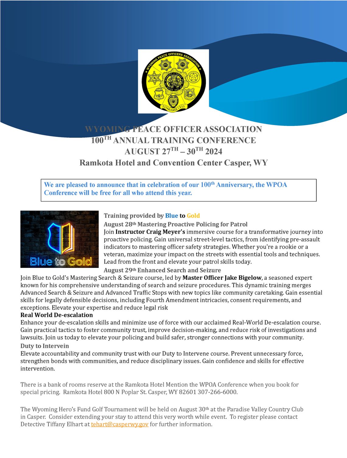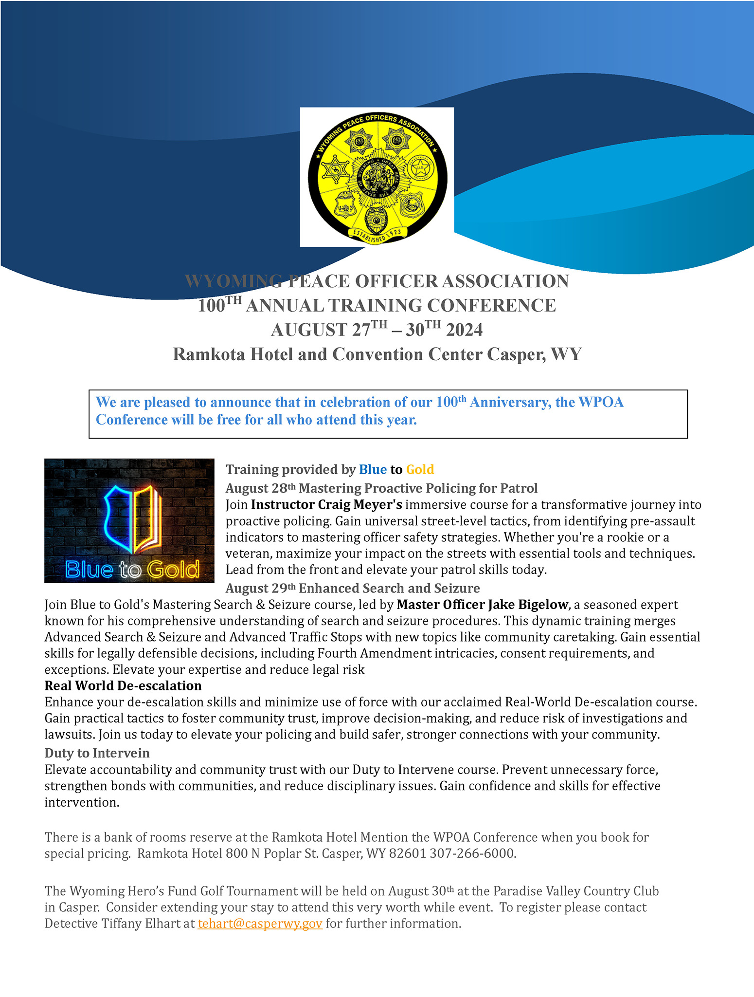 100th Annual WPOA Membership & Training Conference Scheduled for August 2024!